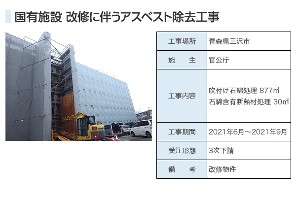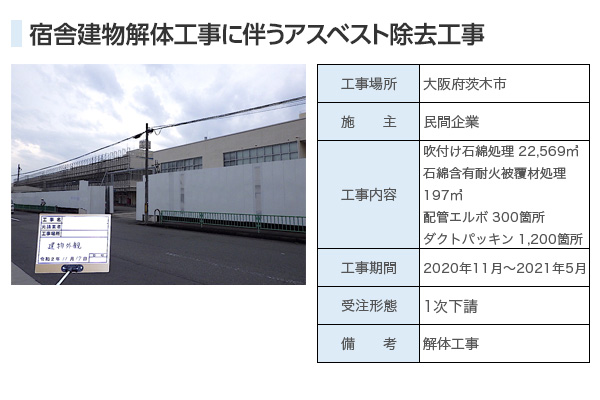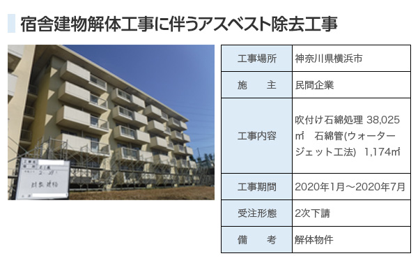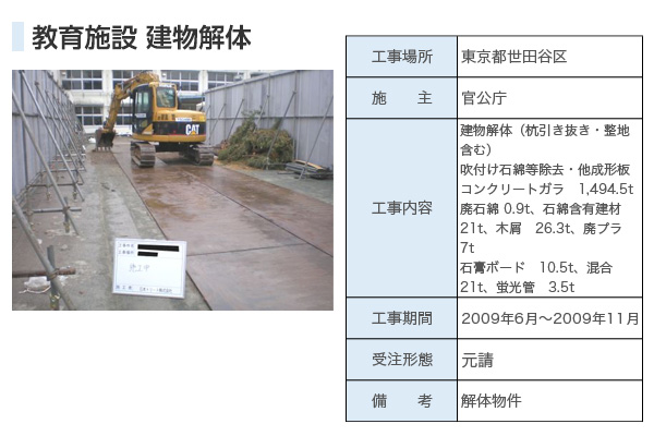 社では、S造、RC造、W造の官公庁・民間工事の実績もあり、物件の規模に関わらずご要望に沿った解体工事および有害物質処理まで一貫して行っております。
