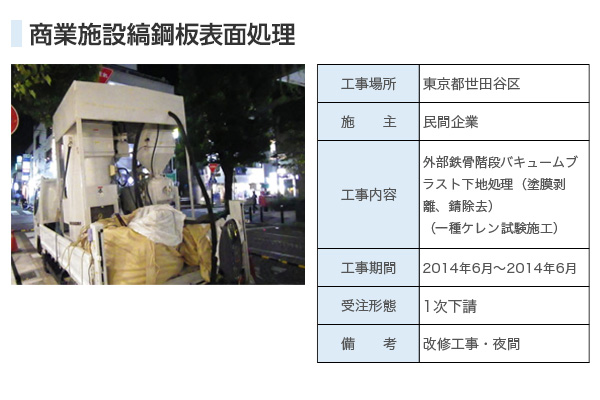 ルミナやスチールグリッドを噴射することにより、様々な用途に活躍します。弊社のブラスト工事は、処理加工と同時に、粉塵、研削材、塗膜片等を飛散させることなく集塵回収できます。素地調整、防滑処理、落書き除去、表面処理など目的に合わせ対応いたします。
