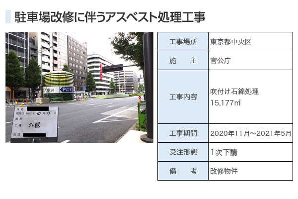 和62年よりスタート。元請・下請問わず、大型物件から官公庁からの受注を多数受けております。日本トリートの開発した「アスシール工法」により、環境、お客様だけでなく作業員にも安全を提供いたします。